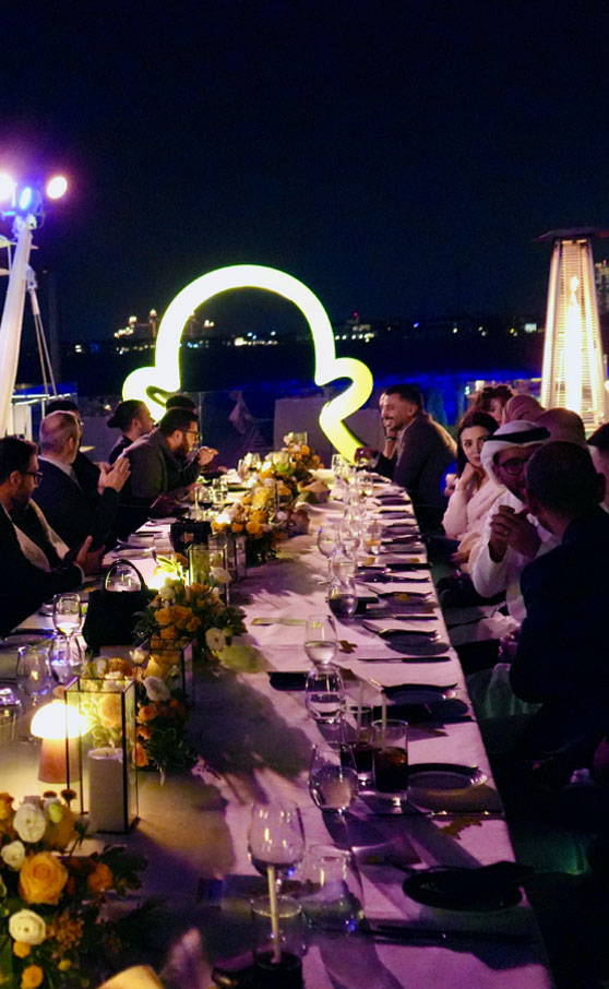 In Dubai, where sunset dinners are a cherished tradition, Inspire elevated this experience to create a memorable event for Snapchat. Collaborating closely with the venue team, we meticulously planned special menu selections and refined the branding elements to perfection, crafting a dining experience bathed in golden light. At Inspire, we focus on orchestrating seamless customer journeys, and this event was a prime example. Strategic placement of key visuals and thoughtful arrangement of the networking and dining areas fostered engaging conversations, ensuring a professional and unforgettable evening for all attendees.