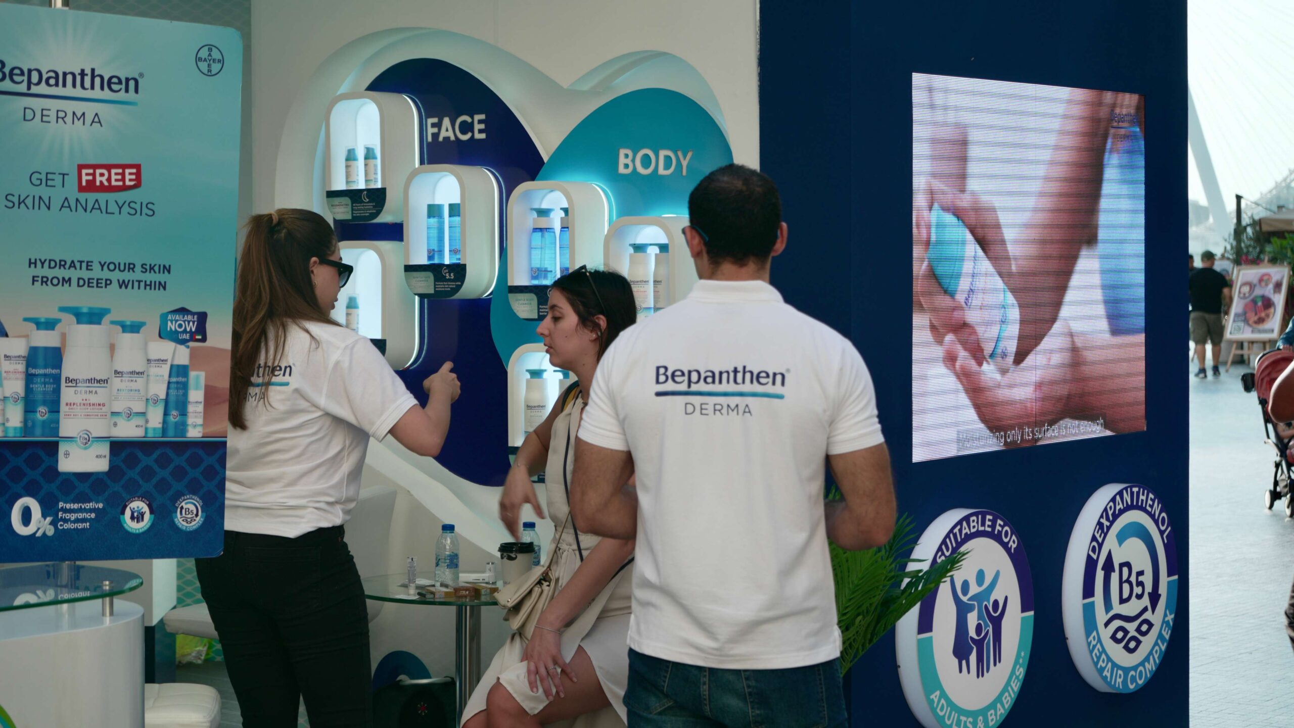 Inspire Events coordinated the Bepanthen activation at JBR, where attendees had the opportunity to experience Bepanthen products firsthand. This engaging event allowed participants to learn about skin hydration benefits from Bepanthen’s range, enhancing their understanding of effective skincare through live demonstrations and expert guidance.